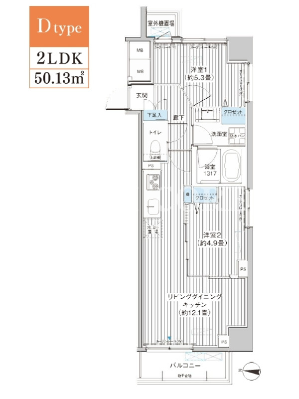 | 間取内容 | 2LDK 〜 3LDK | 面積 | 50.13m²~60.01m² |