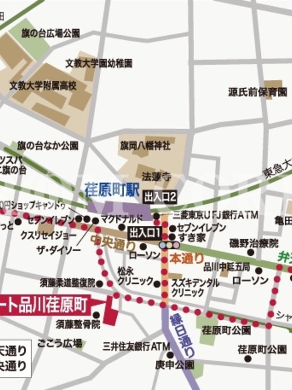 徒歩3分 東急池上線「旗の台」駅 徒歩7分 都営浅草線「馬込」駅 徒歩10分 東急池上線「長原」駅 徒歩13分 東急池上線「荏原中延」駅 徒歩14分 |