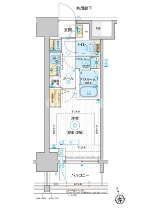 敷金1.0ヶ月、 北向き、 広さ20.95平米のお部屋です。