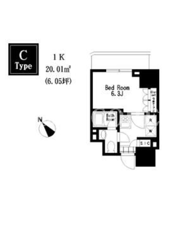 敷金0.0ヶ月、 北東向き、 広さ20.01平米のお部屋です。