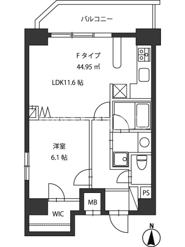 敷金1.0ヶ月、 北向き、 広さ44.95平米のお部屋です。