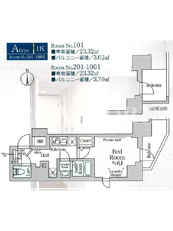 | 101 | 1K | 23.32m2 | 9.4万円 | 20,000円 | 1.0ヶ月 | 1.0ヶ月 | 詳細はこちら |