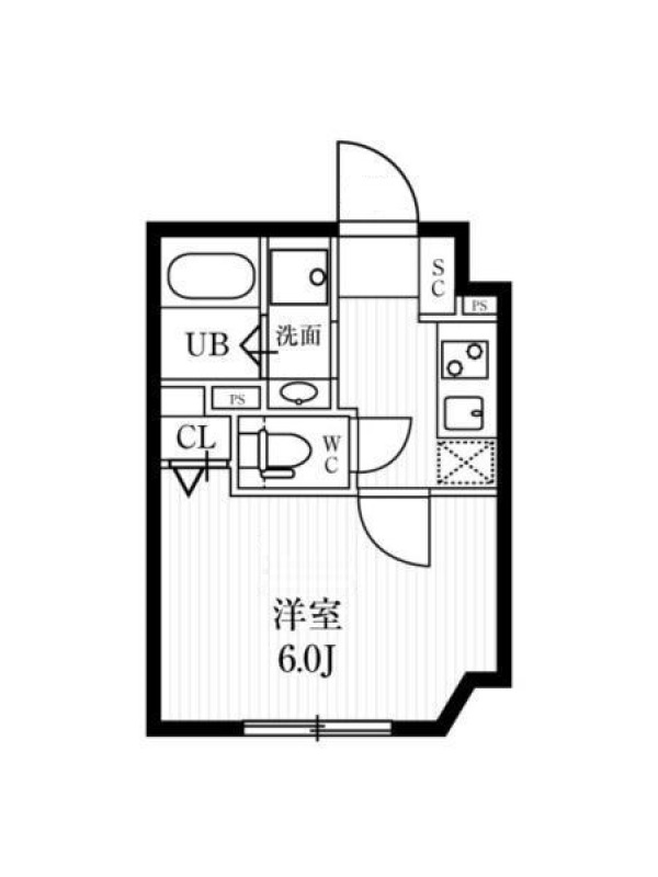 敷金0.0ヶ月、 西向き、 広さ19.81平米のお部屋です。