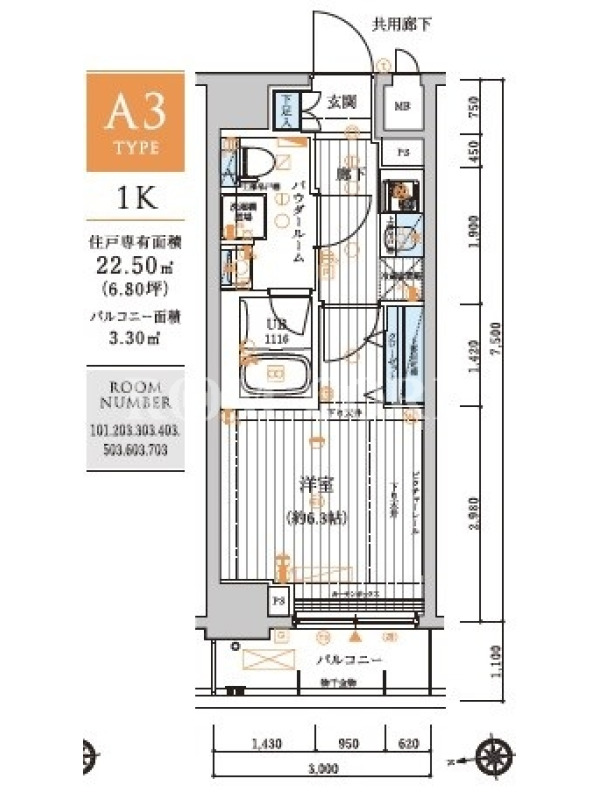 部屋/区画番号 703 総戸/区画数 94