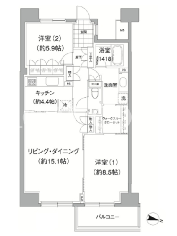 | 向き | 東 | 建物構造 | RC |