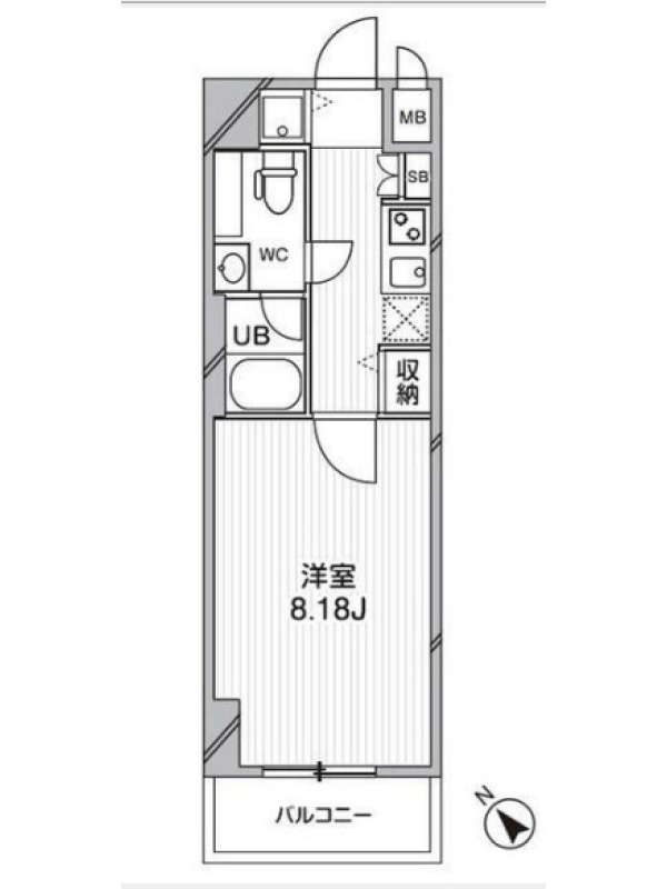 敷金0.0ヶ月、 南西向き、 広さ25.66平米のお部屋です。