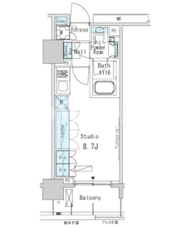 敷金1.0ヶ月、 北向き、 広さ27.61平米のお部屋です。