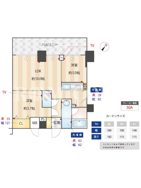 | 向き | 北西 | 建物構造 | RC |