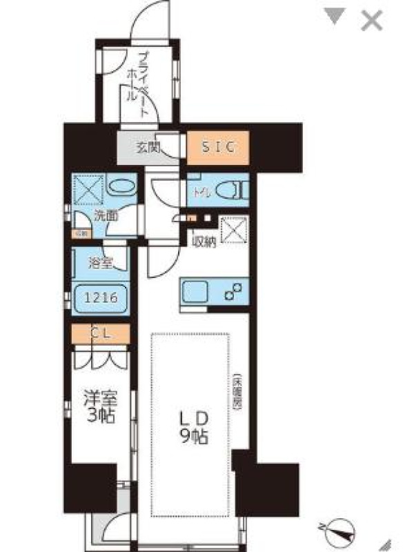 | 向き | 南西 | 建物構造 | RC |