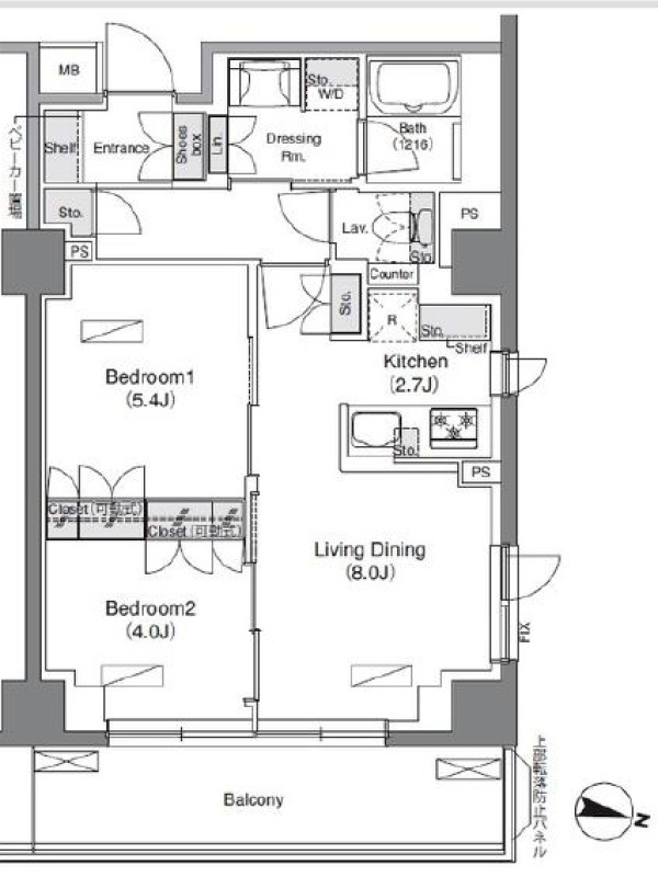 | 向き | 北東 | 建物構造 | RC |