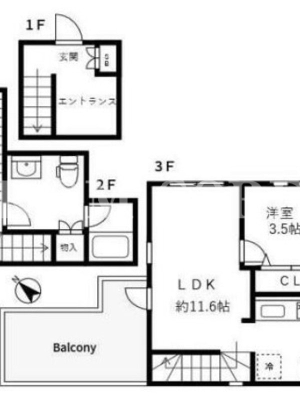 | 建物階数 | 地上3階 | 部屋階数 | 1階 |