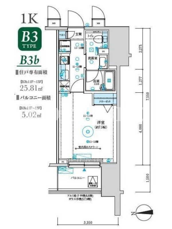 | 建物階数 | 地上13階 | 部屋階数 | 9階 |