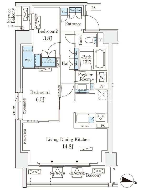 | 向き | 東 | 建物構造 | RC |