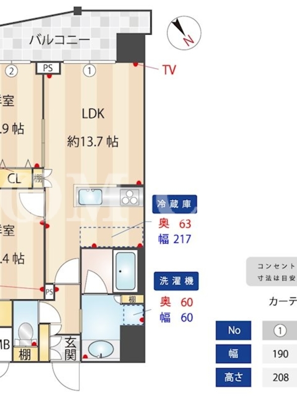 | 向き | 南西 | 建物構造 | RC |