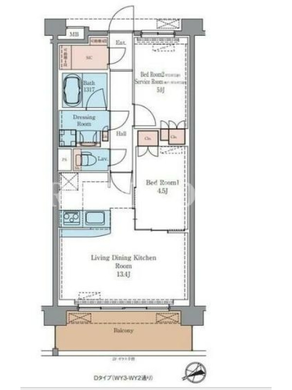 | 向き | 北西 | 建物構造 | RC |