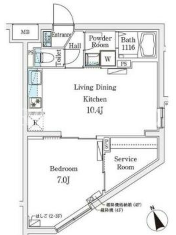 | 建物階数 | 地上4階 | 部屋階数 | 2階 |