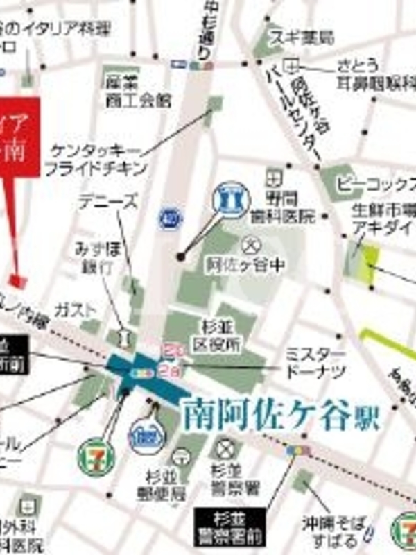 東京メトロ丸ノ内線「南阿佐ヶ谷」駅 徒歩2分 JR中央線(快速)「阿佐ヶ谷」駅 徒歩9分 JR中央・総武線「阿佐ヶ谷」駅 徒歩9分 JR中央線(快速)「荻窪」駅 徒歩19分 東京メトロ丸ノ内線「荻窪」駅 徒歩19分 |
