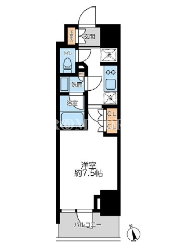 敷金1.0ヶ月、 南西向き、 広さ25.48平米のお部屋です。