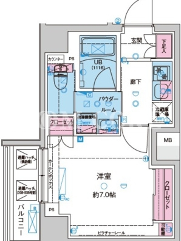敷金0.0ヶ月、 北向き、 広さ26.3平米のお部屋です。
