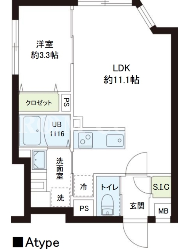 敷金0.0ヶ月、 北東向き、 広さ33.99平米のお部屋です。