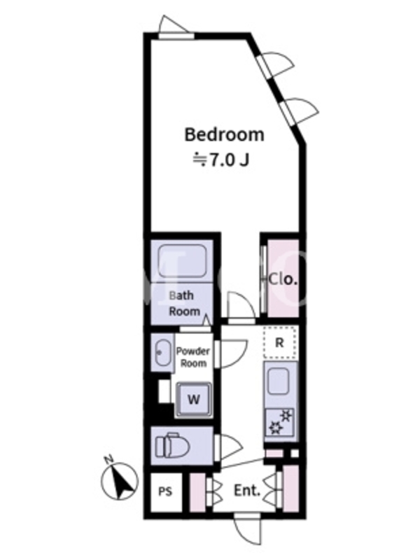 敷金1.0ヶ月、 北東向き、 広さ25.34平米のお部屋です。