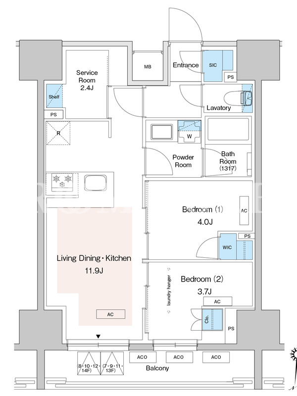 | 建物階数 | 地上14階 | 部屋階数 | 14階 |