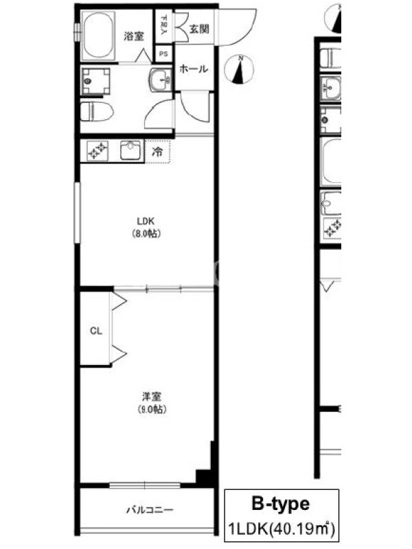 敷金0.0ヶ月、 南向き、 広さ40.19平米のお部屋です。