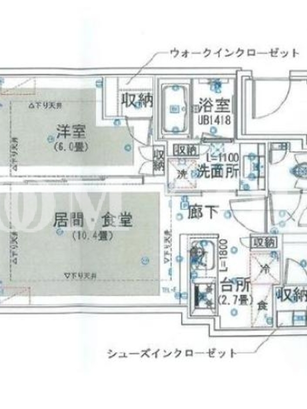 敷金1.0ヶ月、 南西向き、 広さ46.37平米のお部屋です。
