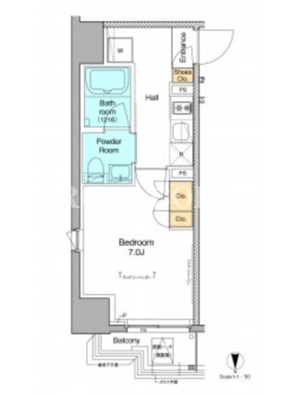 敷金1.0ヶ月、 北向き、 広さ25.04平米のお部屋です。