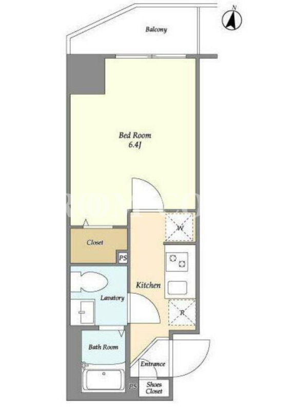 敷金1.0ヶ月、 北向き、 広さ21.71平米のお部屋です。