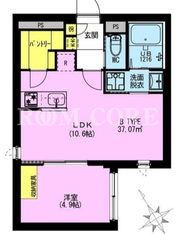 敷金0.0ヶ月、 南東向き、 広さ37.07平米のお部屋です。