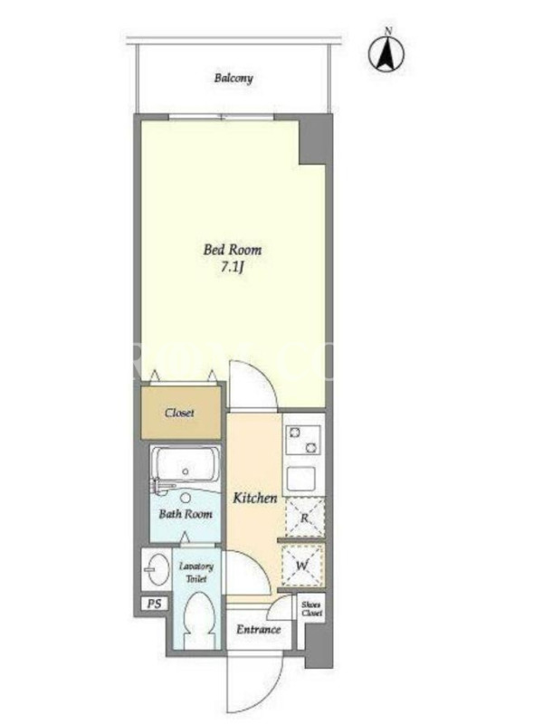 敷金1.0ヶ月、 北向き、 広さ21.98平米のお部屋です。