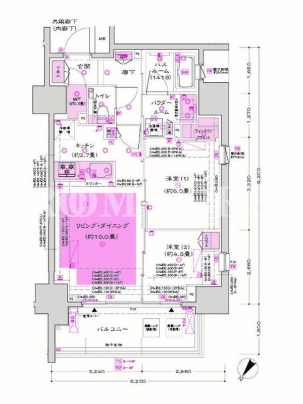 | 向き | 北西 | 建物構造 | RC |