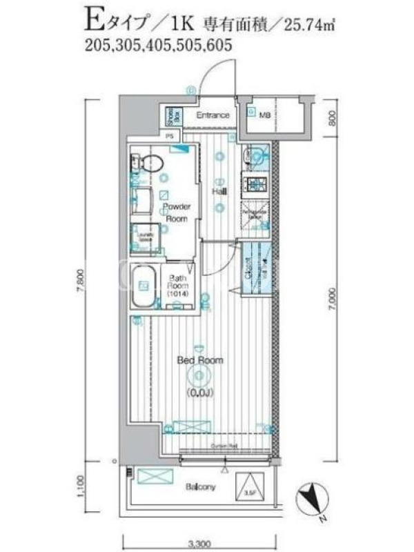 敷金0.0ヶ月、 北東向き、 広さ25.74平米のお部屋です。