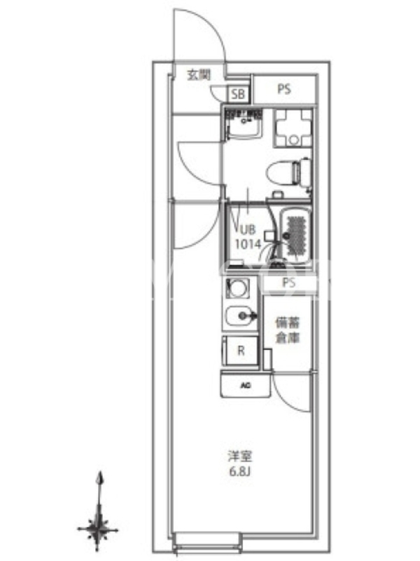 敷金0.0ヶ月、 南向き、 広さ20.02平米のお部屋です。