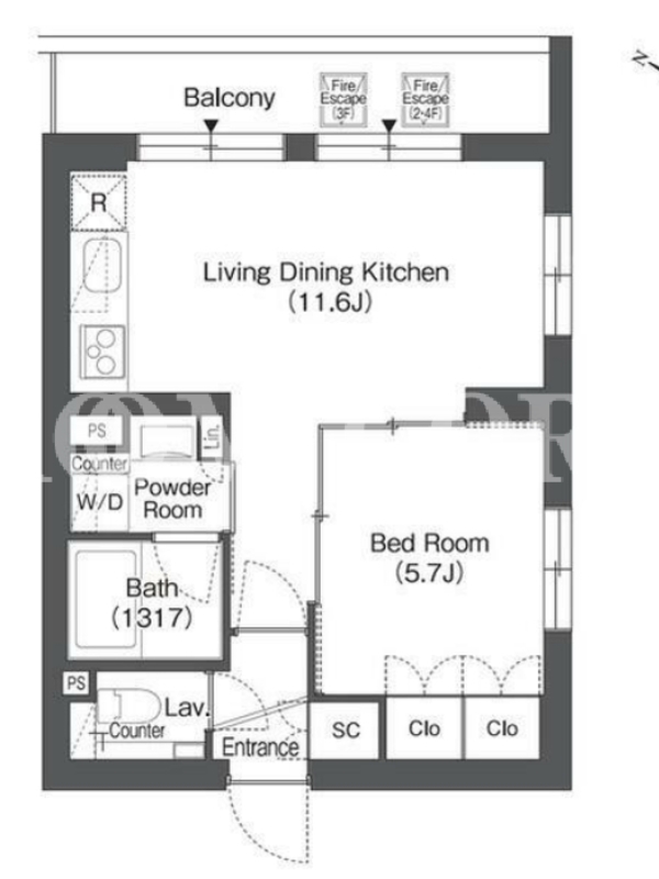 | 向き | 北東 | 建物構造 | RC |