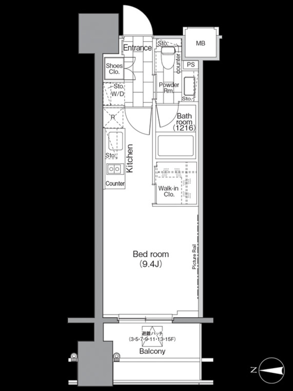 | 建物階数 | 地上15階 | 部屋階数 | 14階 |