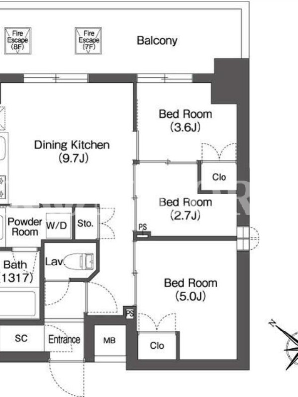 | 向き | 北東 | 建物構造 | RC |